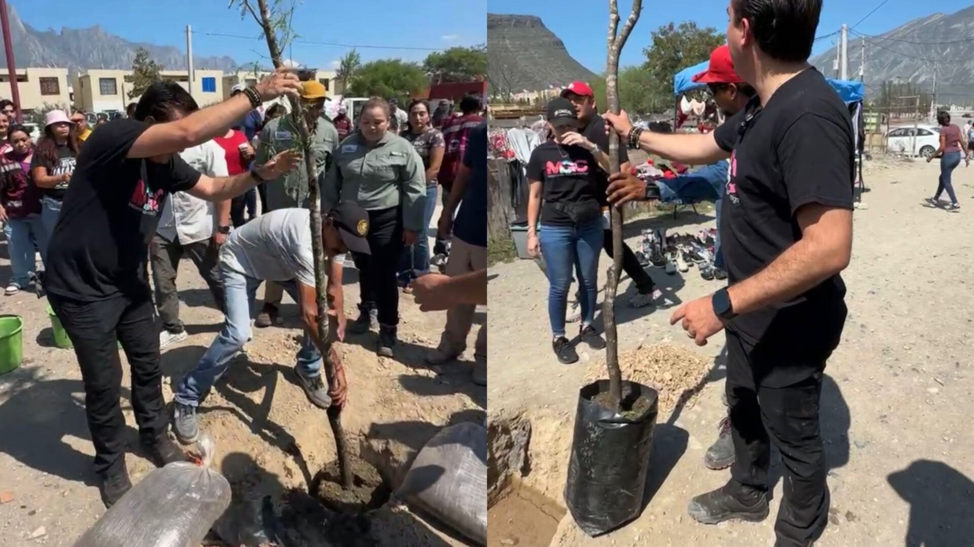 En este sector ya colocamos los murales de mi gente bonita, instalamos la megatorre de luz y ahora estamos sembrando vida, aire limpio, con especies originarias de la región, informó Manuel Guerra Cavazos.