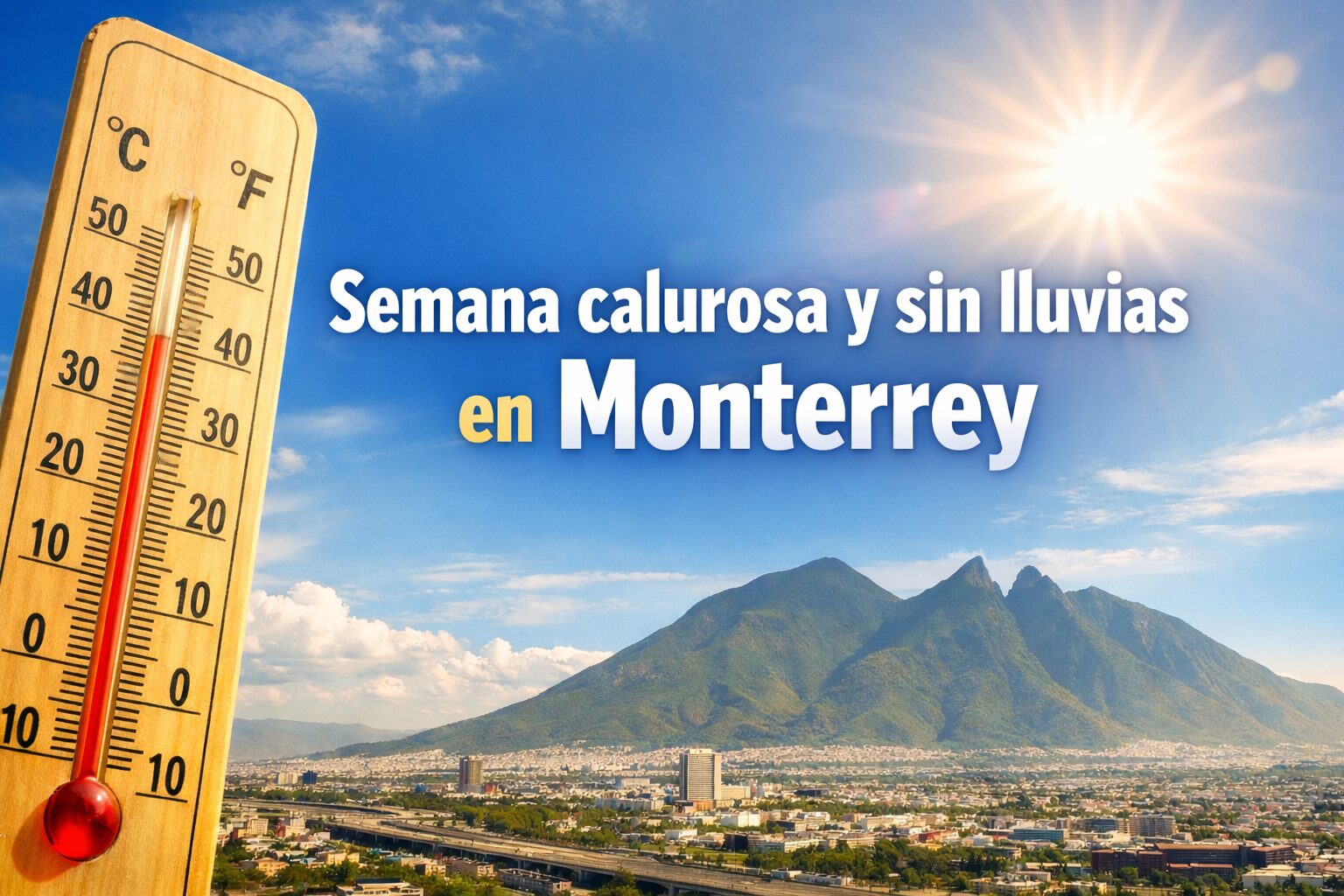 Monterrey, N.L. — El inicio de esta semana estará marcado por temperaturas elevadas y ausencia de lluvias en el área metropolitana de Monterrey, donde el ambiente se sentirá más cálido de lo habitual para esta época del año. Durante los próximos días predominarán los cielos despejados y el clima seco.