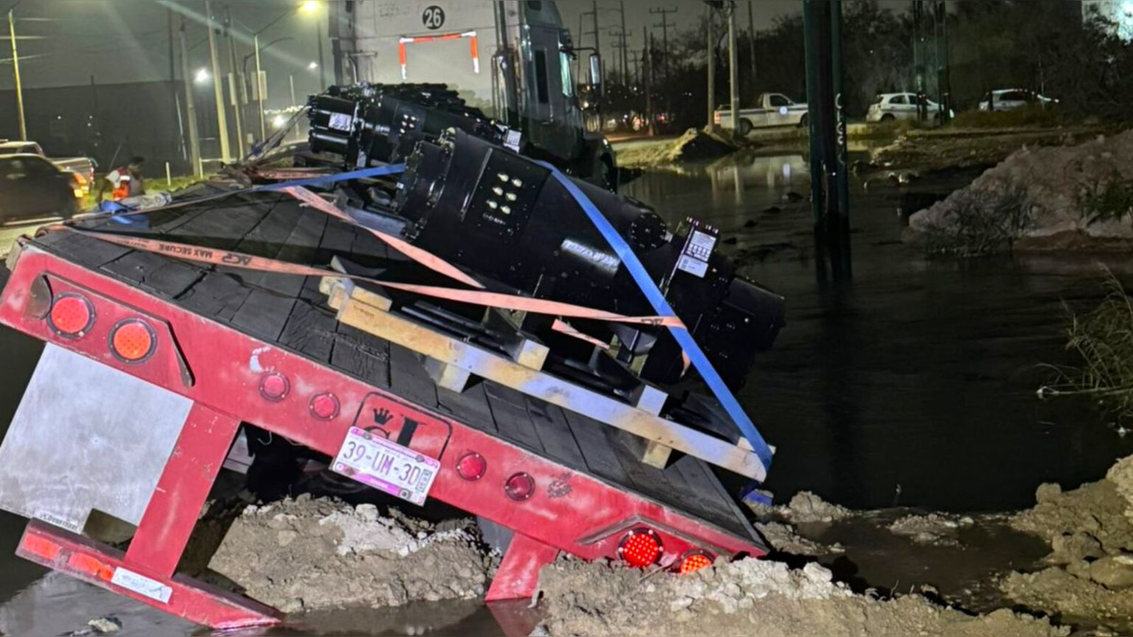 García, Nuevo León. — Un tráiler que intentó evadir una caseta del Anillo Periférico perdió el control y chocó contra una tubería de agua, causando una fuga que afectó a varias colonias del municipio. El accidente dañó la infraestructura de la línea de agua y obligó a suspender el suministro de manera preventiva mientras se realizaban las reparaciones.