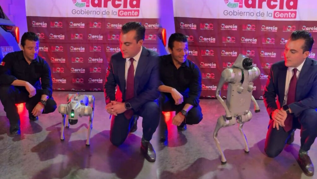 García, N.L. — El alcalde Manuel Guerra Cavazos, acompañado del Secretario de Seguridad Pública, presentó este lunes a través de sus redes oficiales al nuevo Elemento K9 Robotizado, que a partir de hoy se incorpora a las labores de seguridad del municipio con misiones específicas.