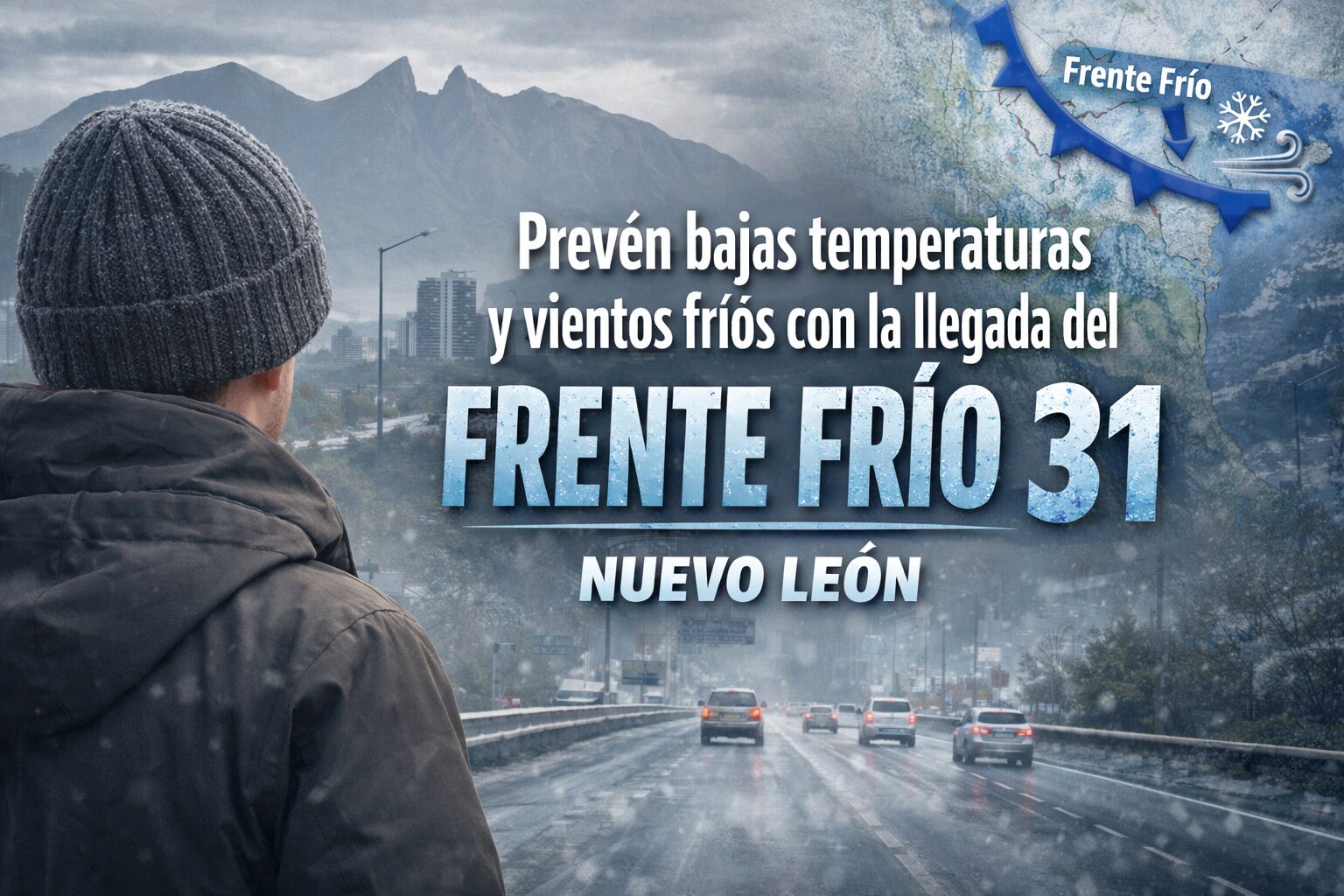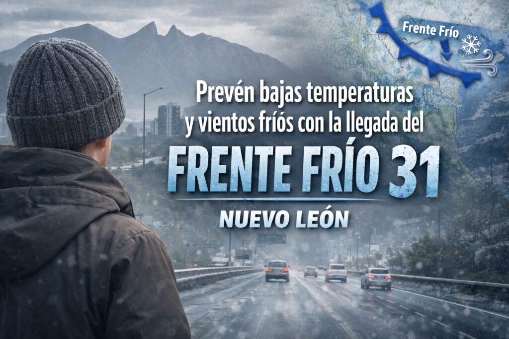 Monterrey, N.L.– La llegada del frente frío número 31 generará un cambio significativo en las condiciones del clima en Nuevo León, con un descenso acelerado de las temperaturas y la presencia de vientos fríos durante el fin de semana, informaron autoridades estatales.