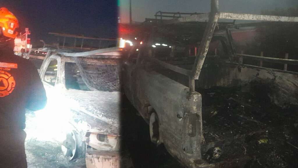 Guadalupe, N.L. — Un camión de mudanzas se incendió por completo mientras circulaba por la autopista a Reynosa, dentro de este municipio. El fuego comenzó poco antes de llegar a la caseta de cobro y, debido al material que transportaba la unidad, las llamas crecieron rápidamente hasta alcanzar un terreno baldío situado a un lado de la carretera. Esto provocó que el incendio se extendiera por la hierba seca, generando una columna de humo que alertó a los conductores que transitaban por el lugar.