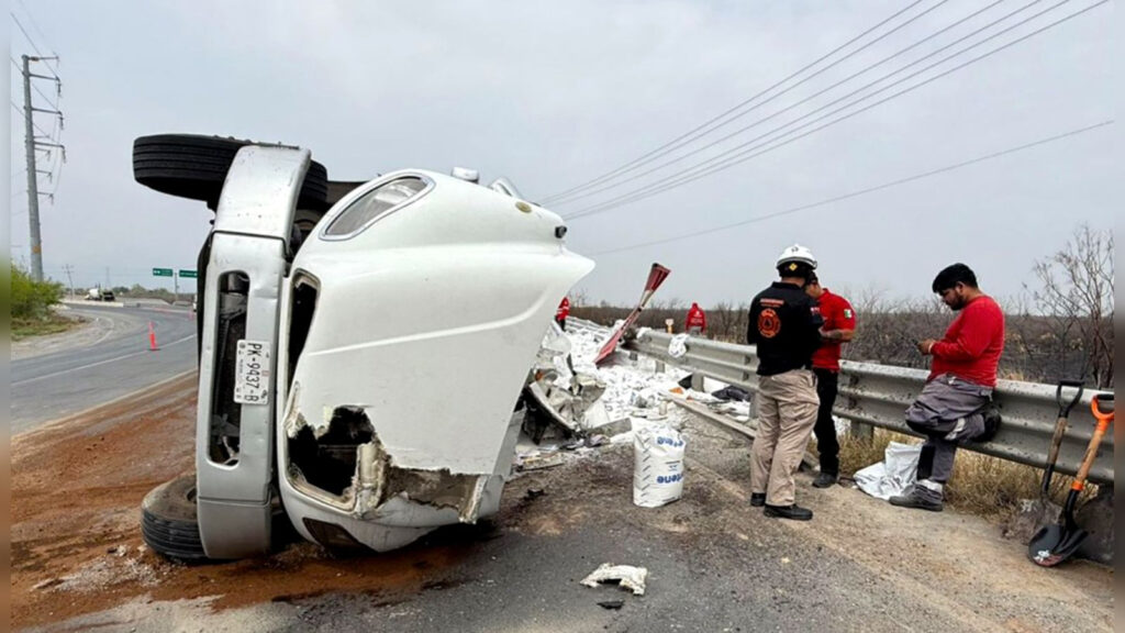 Salinas Victoria, N.L. — Un fuerte accidente se registró la mañana de este martes sobre la carretera a Colombia, luego de que un tráiler cargado con 11 toneladas de polietileno terminara volcado a la altura del kilómetro 22. El percance ocurrió alrededor de las 11:00 horas, lo que provocó una rápida movilización de los cuerpos de auxilio estatales y municipales hacia el lugar del siniestro para atender la emergencia.