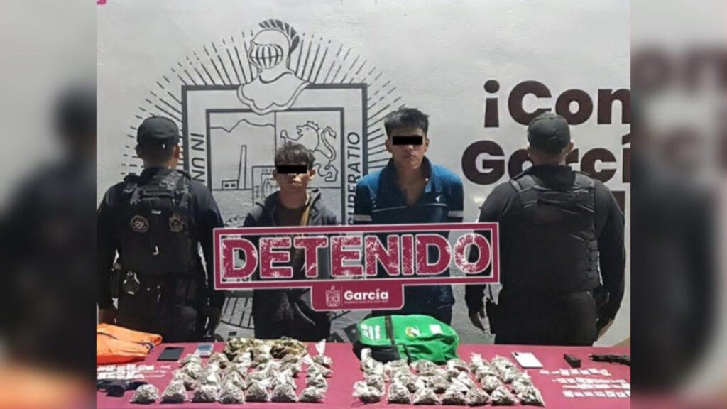 García, N.L. — En un operativo de vigilancia estratégica, elementos de la Policía de García lograron la captura de dos presuntos integrantes de un grupo delictivo que opera en la región, quienes estarían vinculados con hechos violentos recientes. Los detenidos, identificados como Pedro Damián “N”, de 20 años, y Axiel “N”, de 17, fueron interceptados en el sector de Paraje San José luego de que las autoridades detectaran una actitud sospechosa. De acuerdo con las primeras investigaciones, ambos sujetos podrían tener relación directa con un homicidio ocurrido recientemente en esta zona de la ciudad.